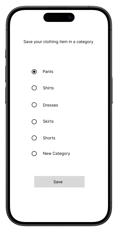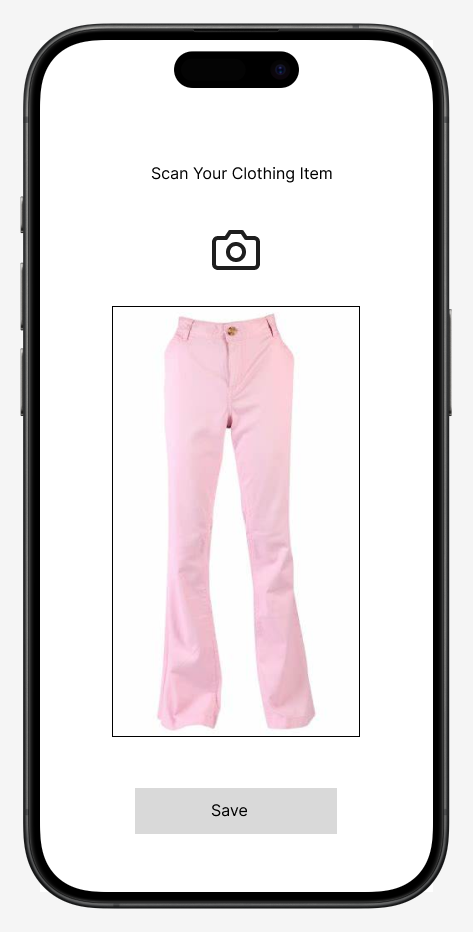 If you clicked on 'Add new Piece of Clothing' you will be directed to this page where you can take a picture of the clothing item.