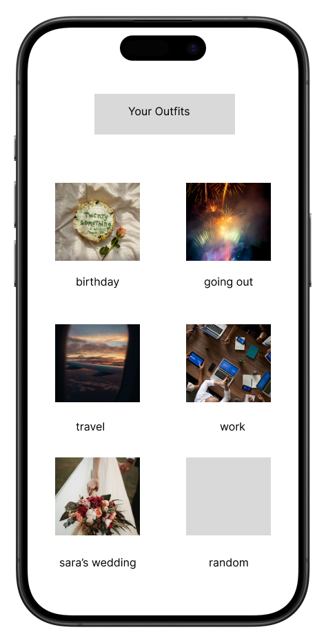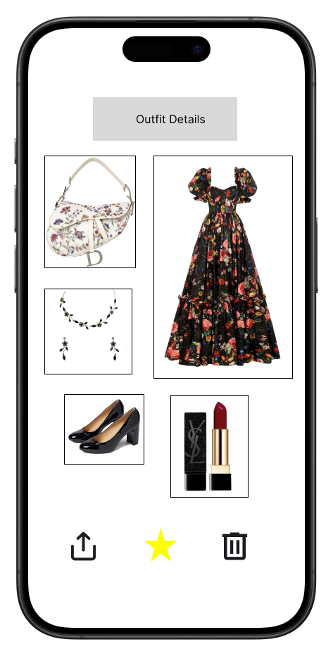 If you click on a specific outfit, you'll be able to see what pieces of clothing from your closet make up the outfit. You will also be able to share the outfit to events or your feed, in the outfit by starring it or delete the outfit